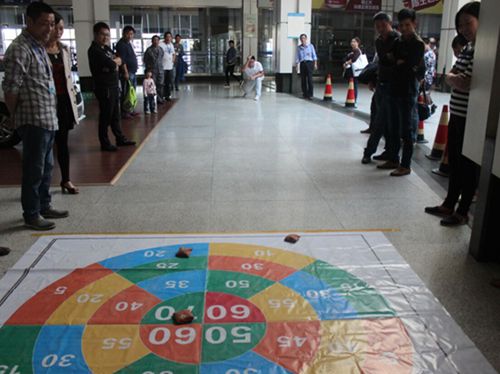 今天(14日)下午14:00時,麗汽集團第六屆職工運動會男、女混合投飛鏢、投沙包比賽繼續在西站賽區開賽,西站片區的員工積極踴躍參賽。在投沙包比賽現場尤為熱鬧,喝彩聲不斷,每當參賽選手投中高分時,觀眾們都熱情的喝彩助威。已參賽的選手和將要上場的選手們在現場也都沒有閑著,相互交流投擲經驗,為投出更好的成績做準備。