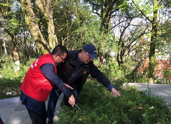 緬懷儀式結束后,全體黨團員一起學習了革命先烈事跡,并拿起掃把和鉗子為烈士墓掃去塵埃,除去雜草。