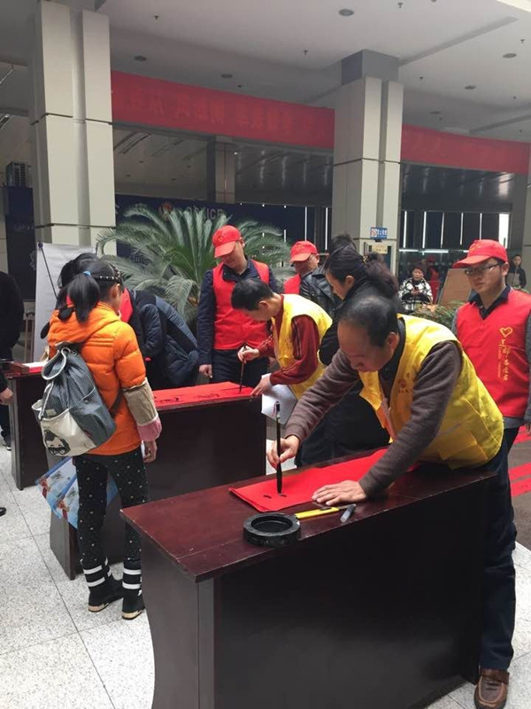 總工會的志愿服務隊伍還帶來了“志愿者書寫春聯”,現場寫就的200多幅春聯很快就被乘客們領取一空。